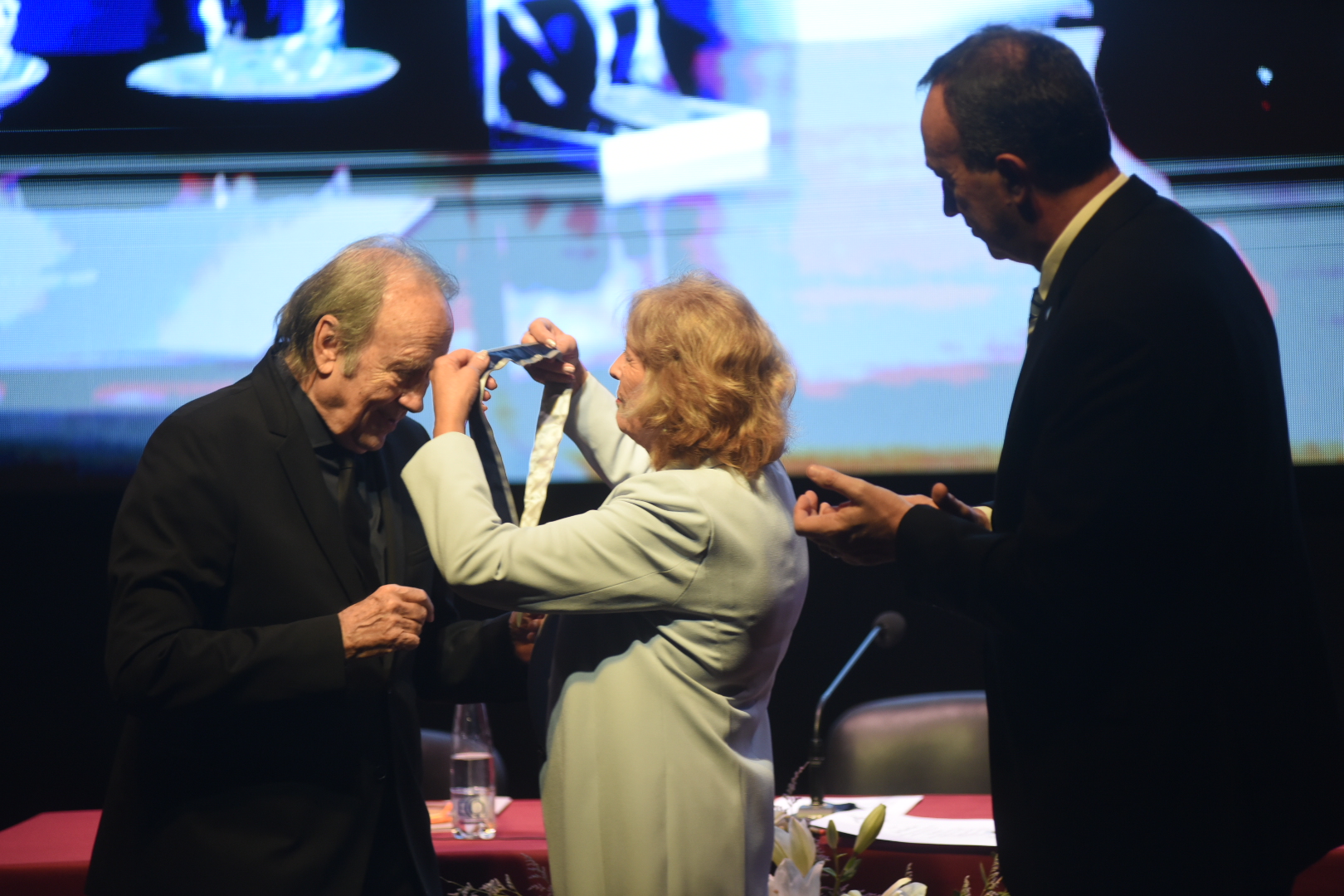 “Queremos decirle gracias. Gracias por el esfuerzo de estar aquí. Gracias por la belleza, por la lucidez y por la ternura; gracias por habernos recordado una y otra vez que la comunidad humana no está condenada. Por su aporte excepcional a la cultura en lengua española y catalana, por su compromiso sostenido con los valores democráticos, humanistas y ambientales, y por la profundidad ética y estética de su obra, la Universidad Nacional de Cuyo tiene el honor de conferirle el título de Doctor Honoris Causa”, expresó.