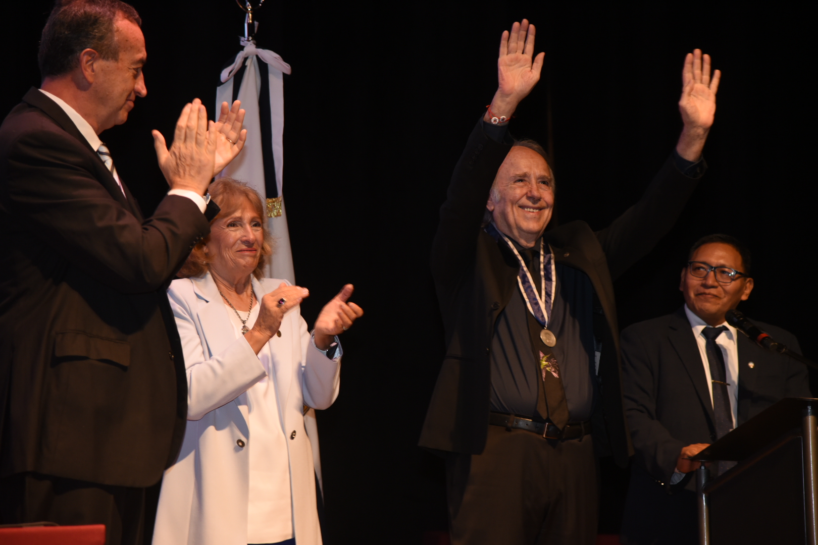 Durante el acto de entrega del reconocimiento, la rectora de la Universidad Nacional de Cuyo, Esther Sanchez, destacó el valor cultural y humano de la obra del artista y agradeció su presencia en la casa de estudios.