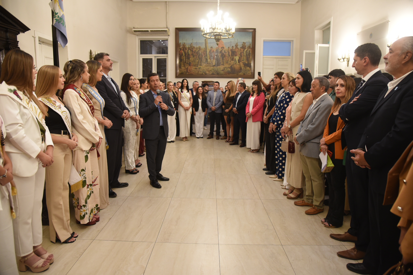 A su turno, el presidente provisional del Senado, Martín Kerchner Tomba, dio la bienvenida a las soberanas y a los presentes, subrayando que la Vendimia, nacida como festejo de la producción, se ha transformado con el tiempo en una expresión cultural que representa a Mendoza ante el país y el mundo. También destacó el rol de las reinas como embajadoras de la provincia y recordó que la Legislatura es la “Casa del Pueblo”, abierta para recibir a quienes representan a cada rincón del territorio mendocino.