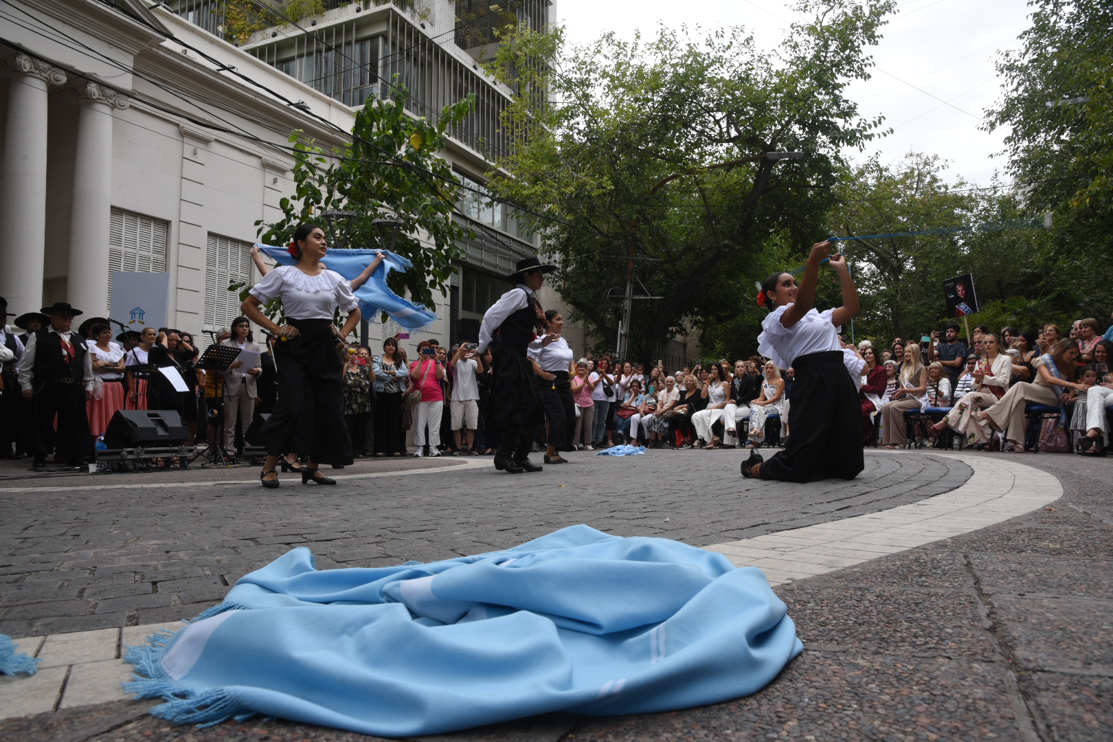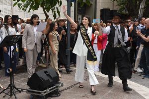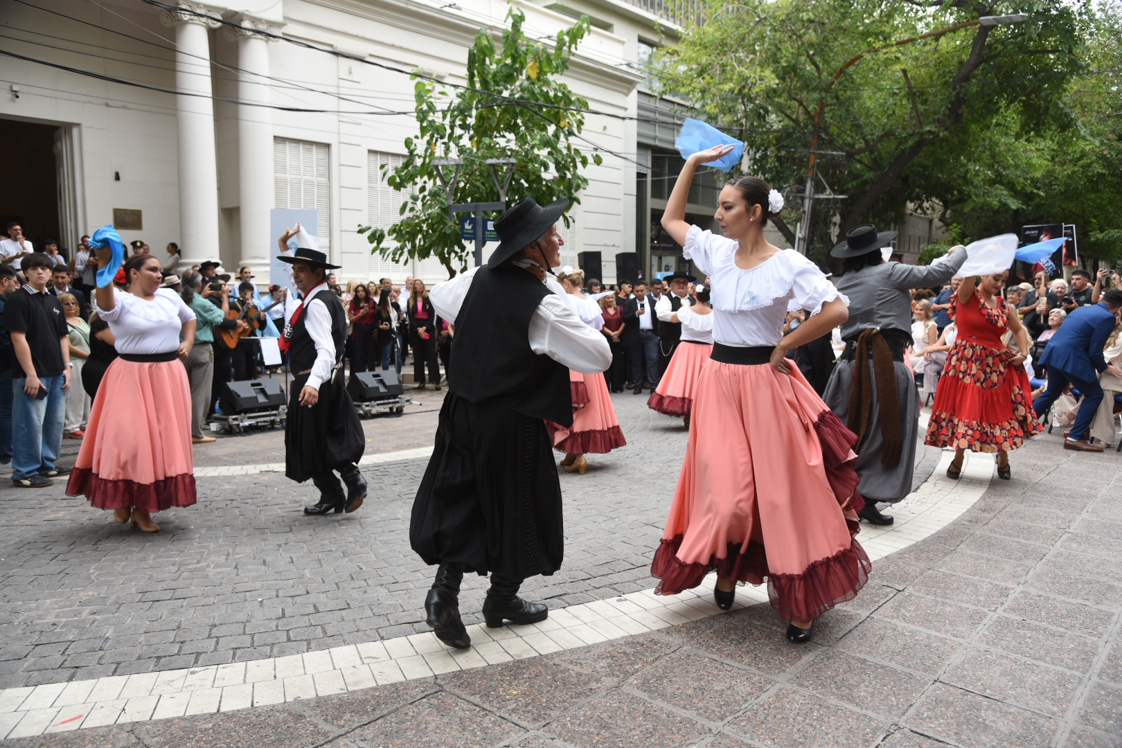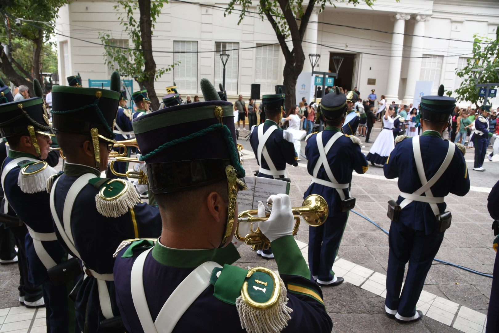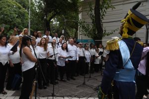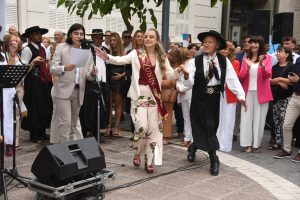 Luego, la celebración se trasladó a la explanada legislativa, donde la Banda Militar Talcahuano, del Regimiento de Infantería de Montaña 11, marcó el comienzo de la propuesta artística mientras el público se acercaba a la peatonal para compartir la mañana vendimial.