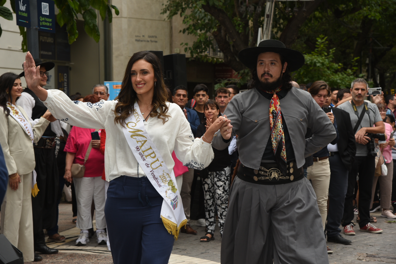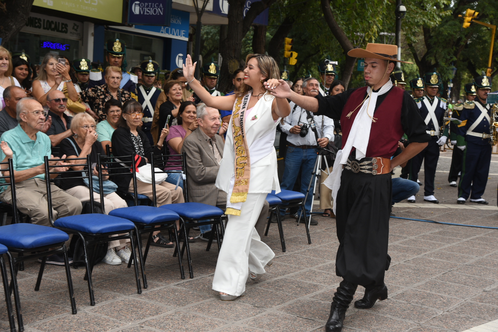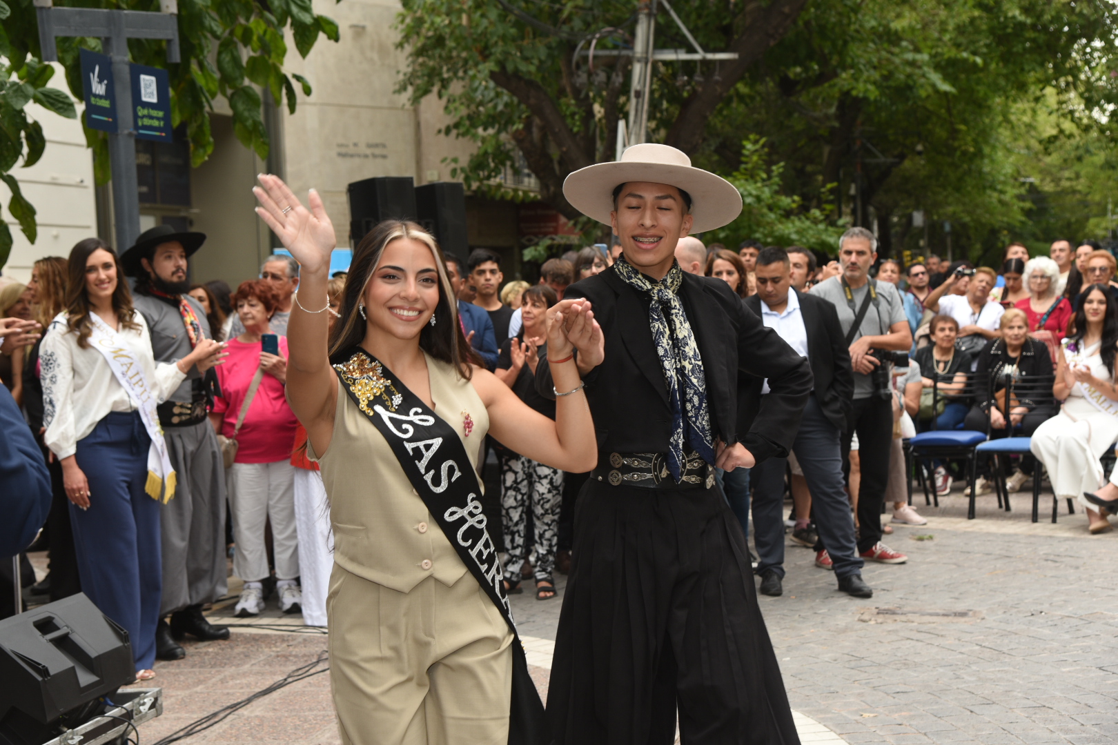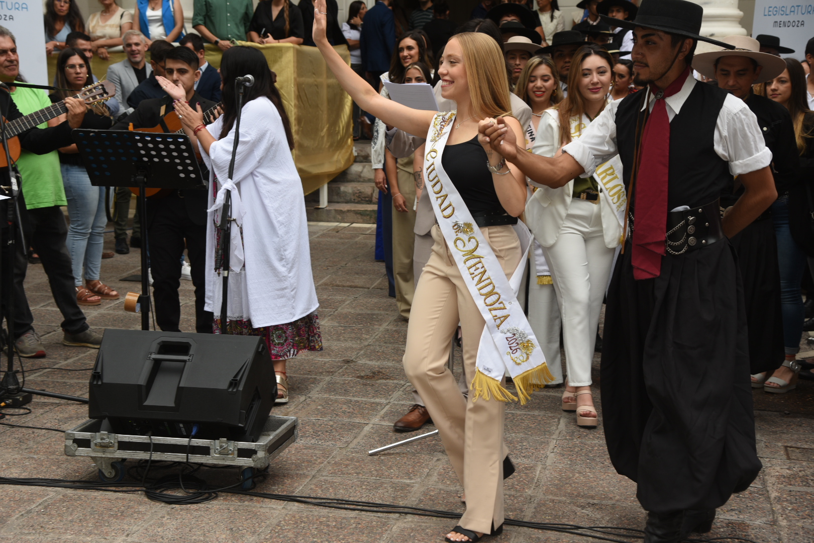 La música cuyana y la danza tradicional acompañaron cada tramo de la celebración. La cantante Fabiana Cacace, junto a músicos en vivo, interpretaron cuecas, gatos y tonadas dedicadas a las soberanas, mientras el Ballet “Lucerito” aportó color y movimiento con cuadros coreográficos que incluyeron danzas tradicionales y un malambo femenino.