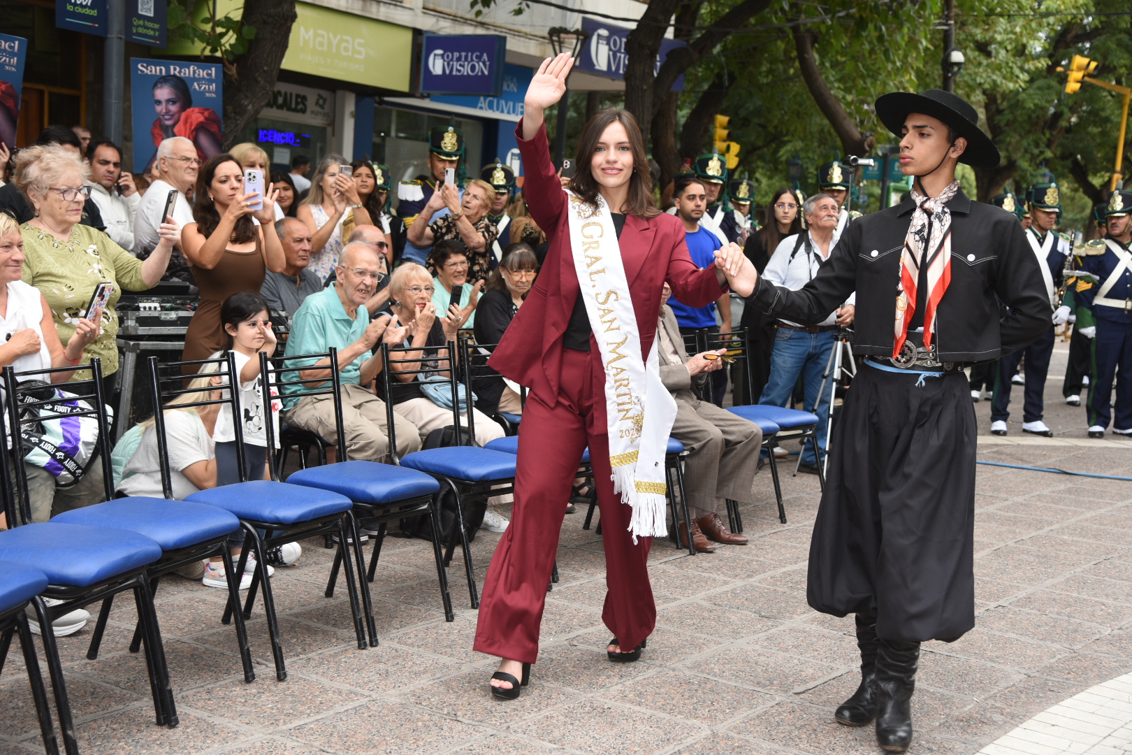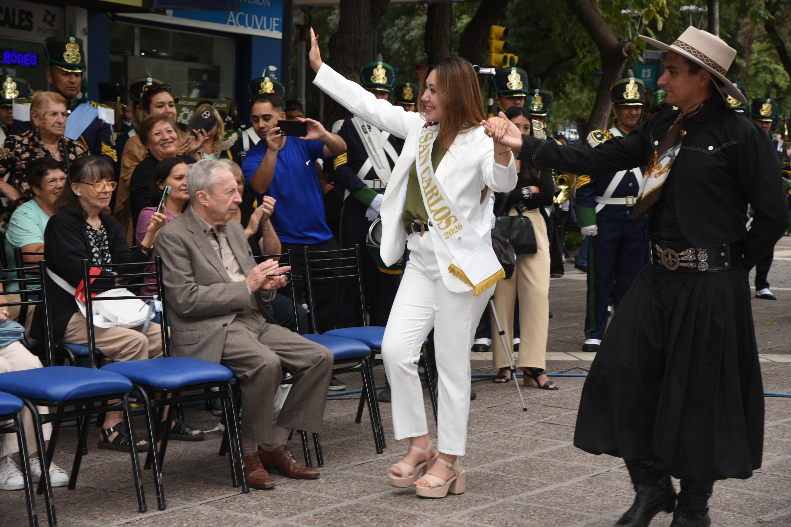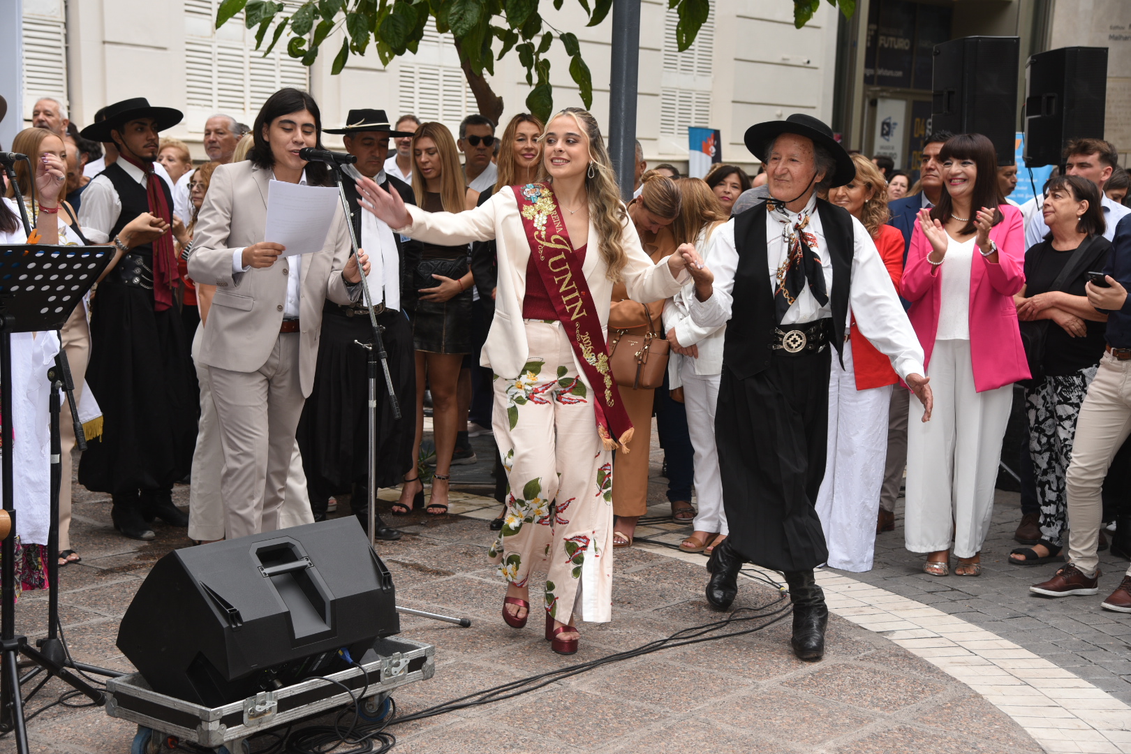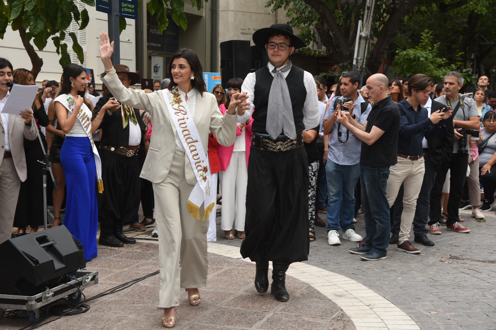 La música cuyana y la danza tradicional acompañaron cada tramo de la celebración. La cantante Fabiana Cacace, junto a músicos en vivo, interpretaron cuecas, gatos y tonadas dedicadas a las soberanas, mientras el Ballet “Lucerito” aportó color y movimiento con cuadros coreográficos que incluyeron danzas tradicionales y un malambo femenino.