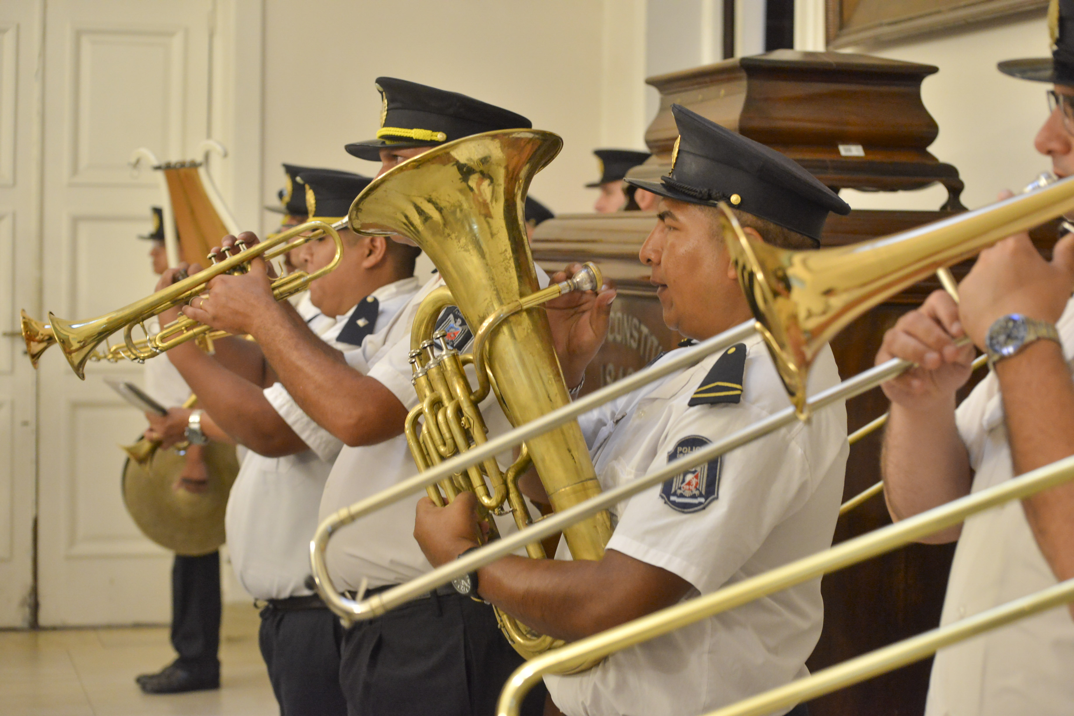 La jornada comenzó con la presentación de la Banda de Música de la Policía de Mendoza “Cabo 1° Gustavo Ramet”, dirigida por el subcomisario profesor Mauricio Zalazar. Con más de dos siglos de historia, la formación musical —declarada Patrimonio Cultural Intangible de la Provincia en 2022— volvió a jerarquizar un acto oficial con su presencia, reafirmando su rol como puente entre la institución policial y la comunidad.