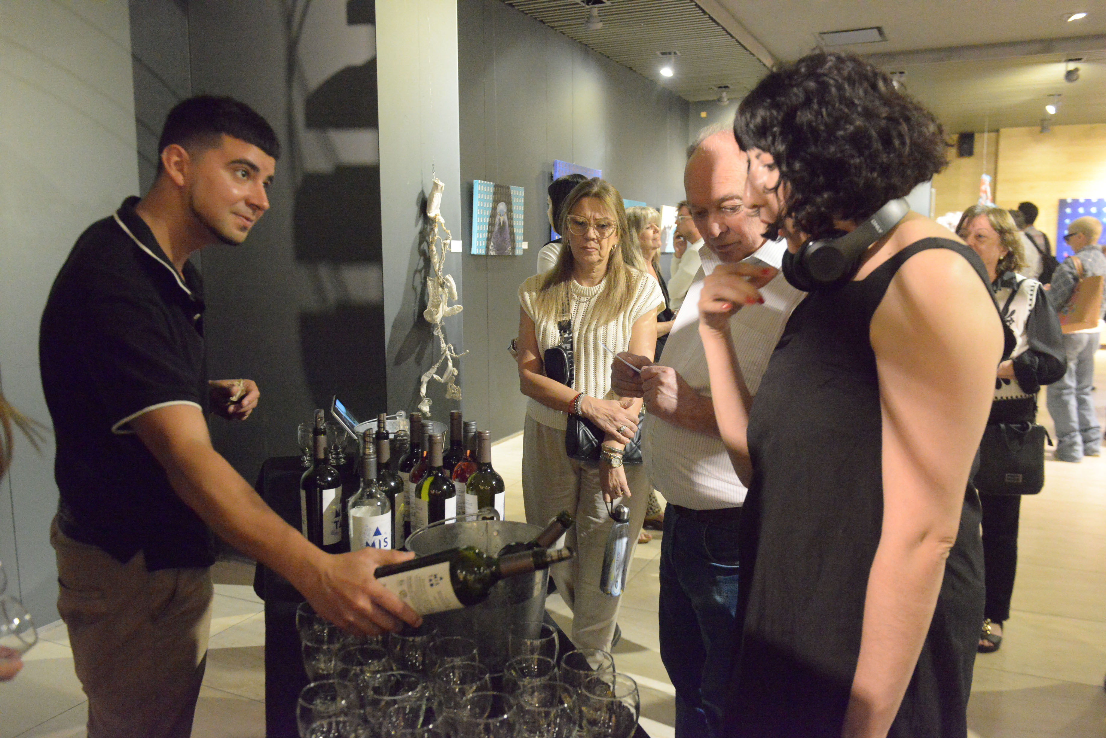 La inauguración contó con el acompañamiento de Bodega Grazie Mille, cuyos vinos, provenientes de La Consulta, Valle de Uco, acompañaron el brindis de la noche. Leandro Flores compartió con los presentes el espíritu de la bodega, invitando a degustar sus varietales mientras el arte seguía expandiéndose en cada conversación.