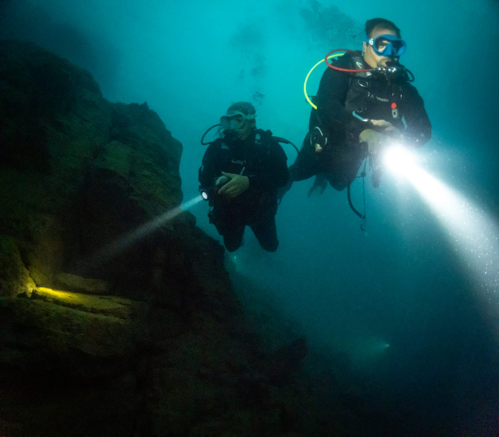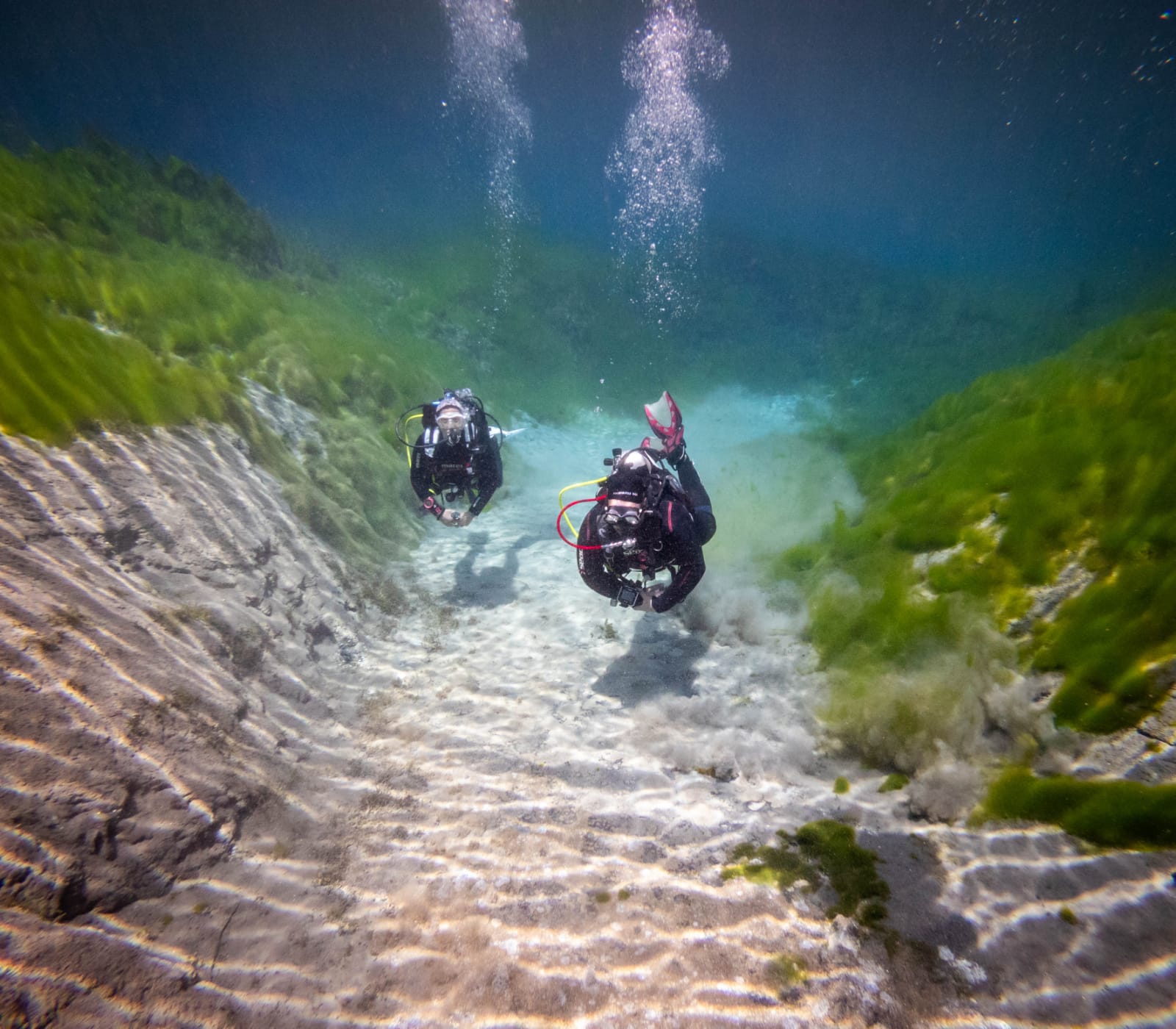 • Oasis Norte: El embalse Potrerillos, con una superficie de 900 hectáreas, es el lugar más elegido. Ubicado a 1.380 msnm, permite inmersiones de hasta 35 metros, dependiendo del nivel de certificación. Sus aguas de deshielo rodeadas por la cordillera ofrecen fondos arenosos, formaciones rocosas y un bosque nativo sumergido. La fauna incluye truchas (Arcoíris, Marrón y Fontinalis), pejerreyes, dientudos, cangrejos y camarones de agua dulce.