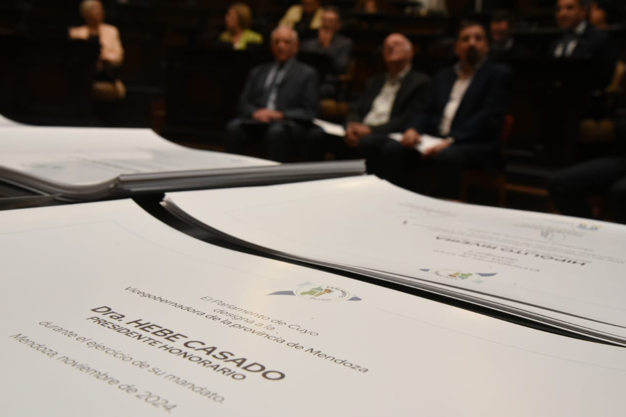 Además, cada miembro del Parlamento de Cuyo recibió un diploma en reconocimiento a su participación. Durante la asamblea, se rindió homenaje a figuras clave en la fundación y consolidación del Parlamento, como los ex vicegobernadores de Mendoza Carlos Ciurca y Juan Carlos Jaliff, quienes fueron reconocidos especialmente por su labor en los primeros años de la institución. También se destacó el trabajo de Hipólito Riveira, quien durante una década se desempeñó como secretario permanente, contribuyendo al fortalecimiento del espíritu de confraternidad cuyana.