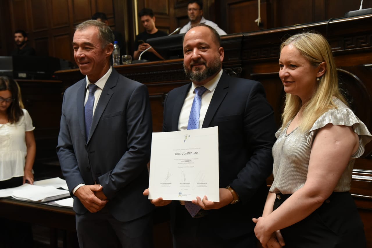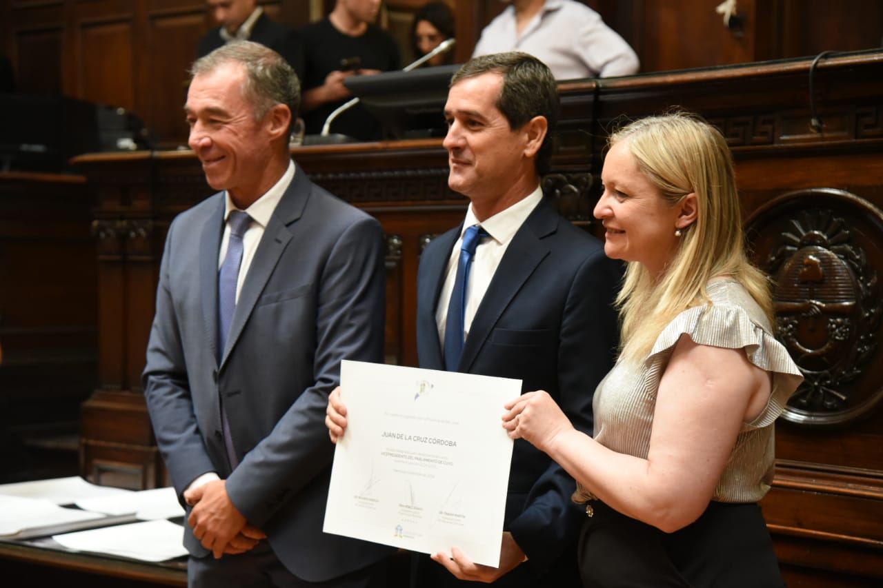 Uno de los momentos destacados de la jornada fue la designación de las nuevas autoridades para el período 2024-2026. Germán Vicchi asumió la presidencia del Parlamento, acompañado por los vicepresidentes Verónica Valverde (Mendoza); Juan de la Cruz Córdoba y Enzo Cornejo (San Juan); y Adolfo Castro Luna y Marisa Patafio (San Luis).