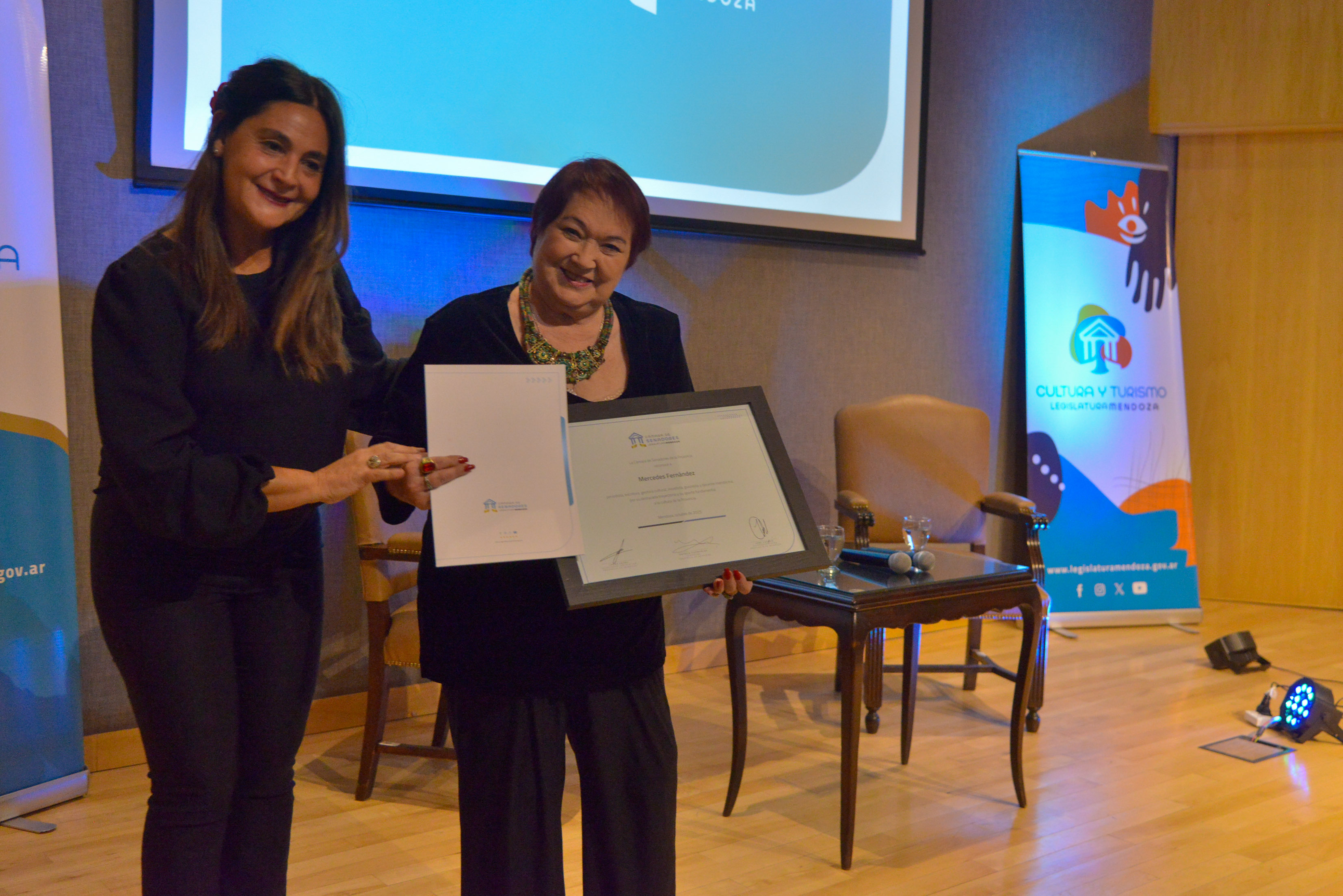 El encuentro fue además marco del reconocimiento otorgado por la Cámara de Senadores, propuesta de la senadora provincial Natalia Eisenchlas, quien destacó la extensa trayectoria de Fernández como periodista, novelista, guionista, gestora cultural y docente. La distinción fue entregada en presencia de colegas, familiares y amigos.