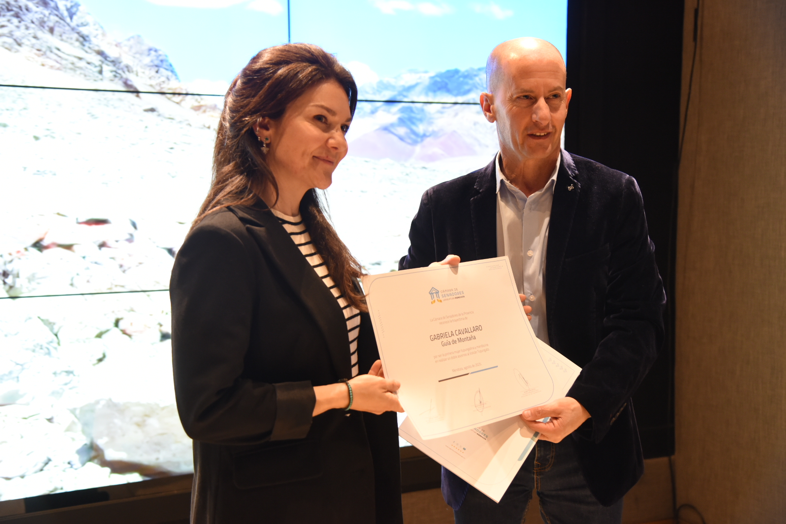 La guía de montaña, junto a su familia y amigos formaron parte de la actividad encabezada por el senador Gustavo Soto que destacó que Cavallaro ha realizado numerosas expediciones y ascensos de montaña de gran altitud entre los que podemos destacar el Volcán Tupungato (6570m), el cerro Aconcagua(6962m), el Volcán Llullaillaco (6740m), la Cordillera Blanca en Perú, la Cordillera Real en Bolivia y otras montañas en Argentina, Chile, Perú y Bolivia.
