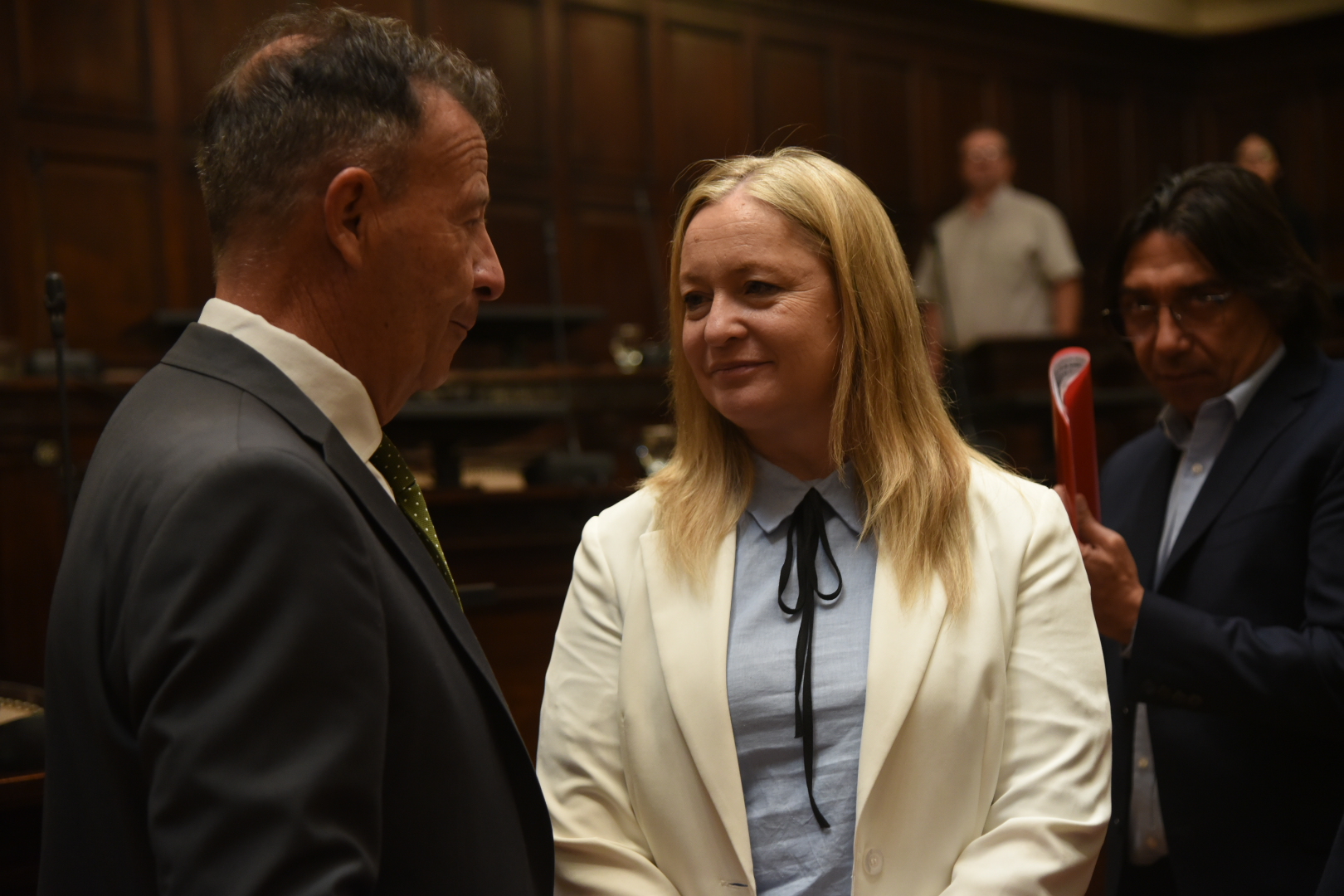Luego, el senador Walther Marcolini, quien preside la comisión de Legislación y Asuntos Constitucionales, brindó los detalles sobre el proceso que llevó a que esta postulante, reciba el aval de la Cámara de Senadores para ocupar este cargo. La postulación para la designación correspondiente, fue tratada y aprobada en el recinto por la Cámara de Senadores, mediante voto secreto.